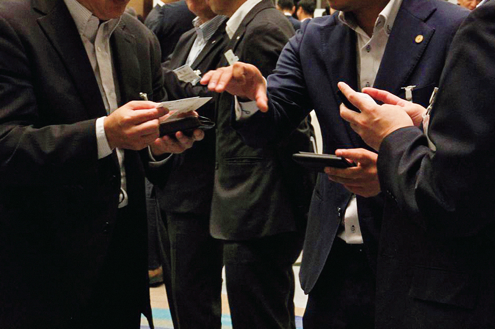 交流会の会場では、名刺と内容の濃い会話が行き交う。経営者同士のつながりがここで生まれていく