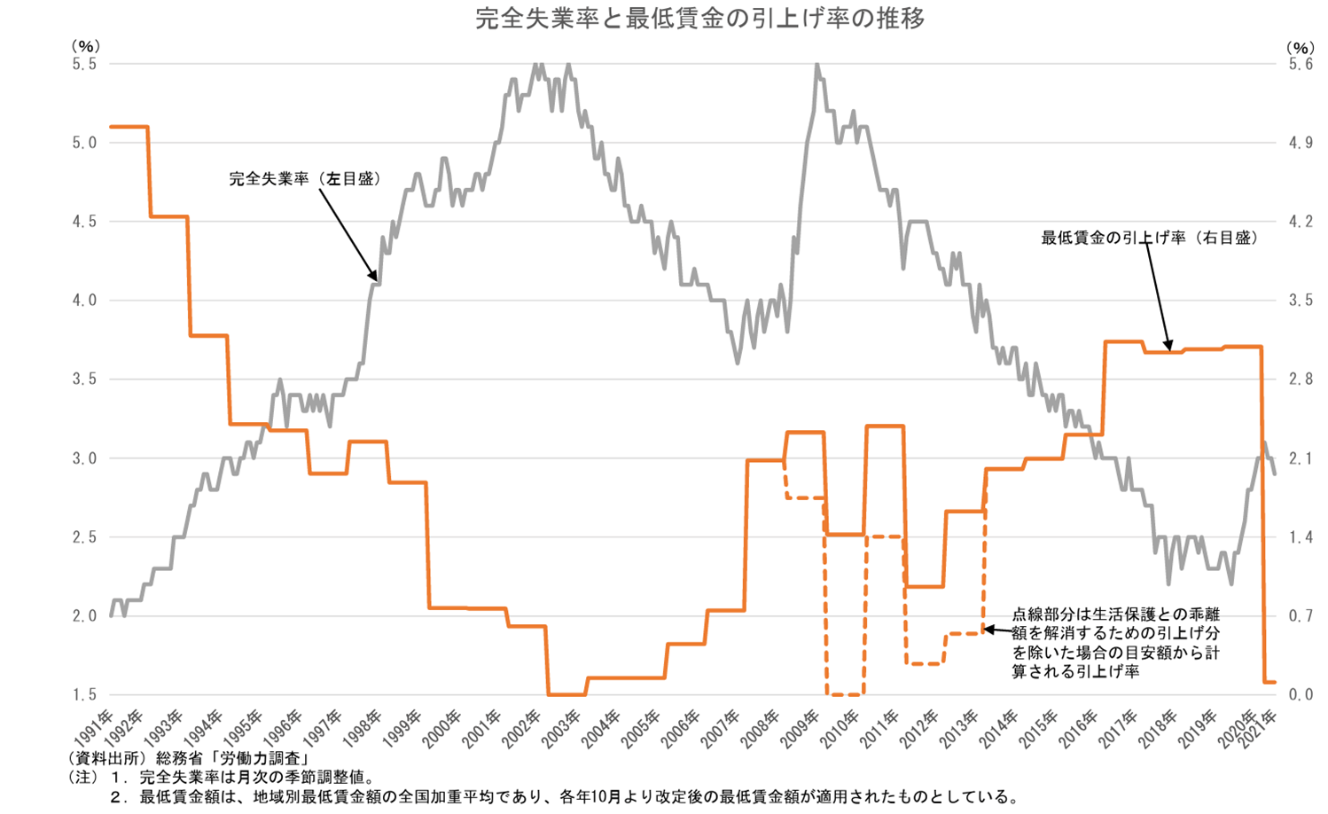 資料:「最低賃金に関する先行研究・統計データ等の整理(案)」厚生労働省