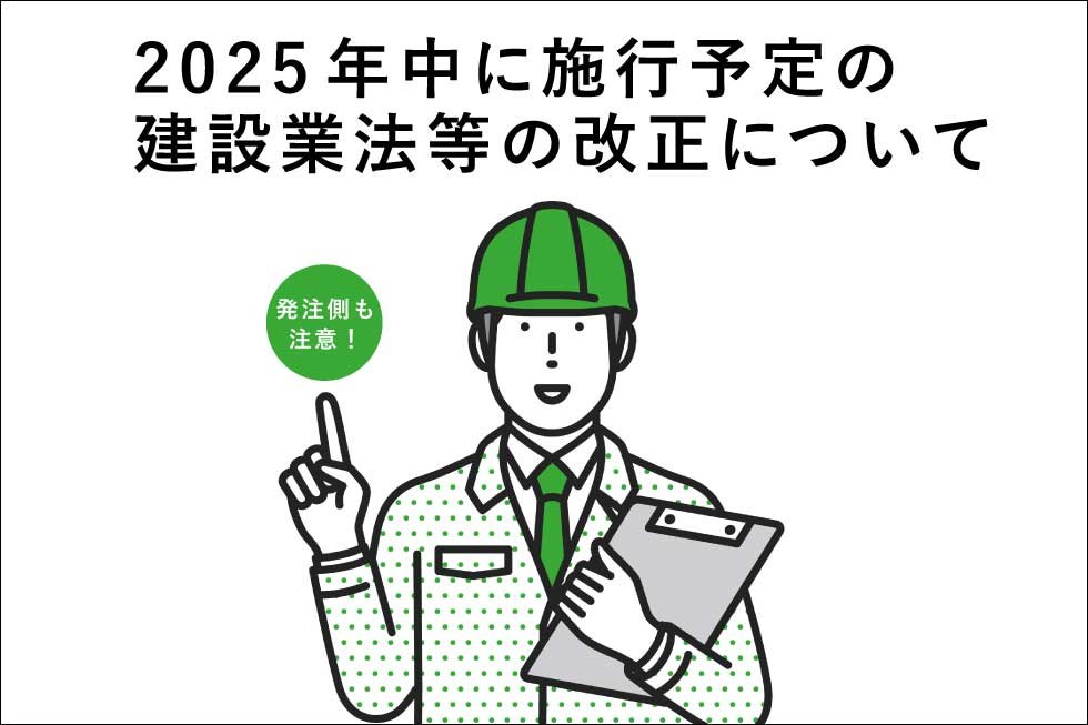 1.2024年6月7日、建設業法及び公共工事の入札及び契約の適正化の促進に関する法律(公共工事適正化促進法)の改正法が国会で可決・成立し、2025年中に施行が予定されています。