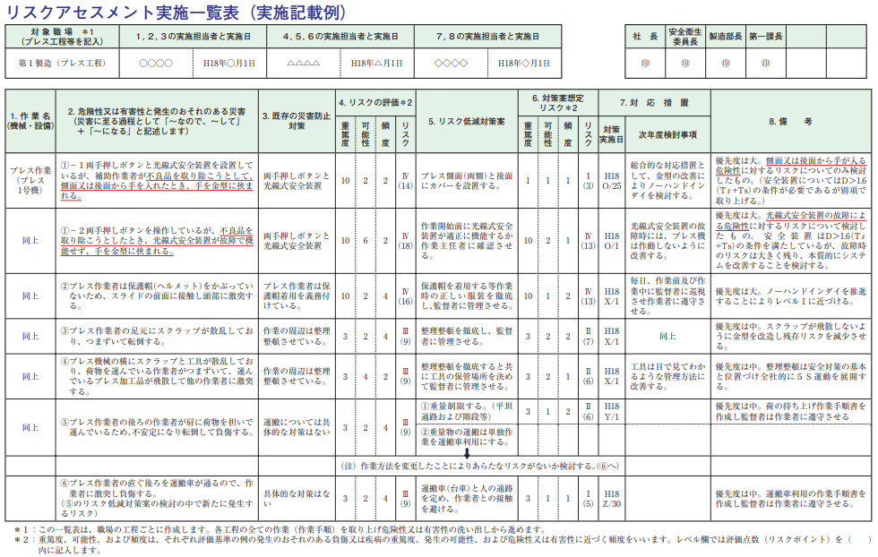 参考:厚生労働省 「プレス事業場におけるリスクアセスメントのすすめ方」