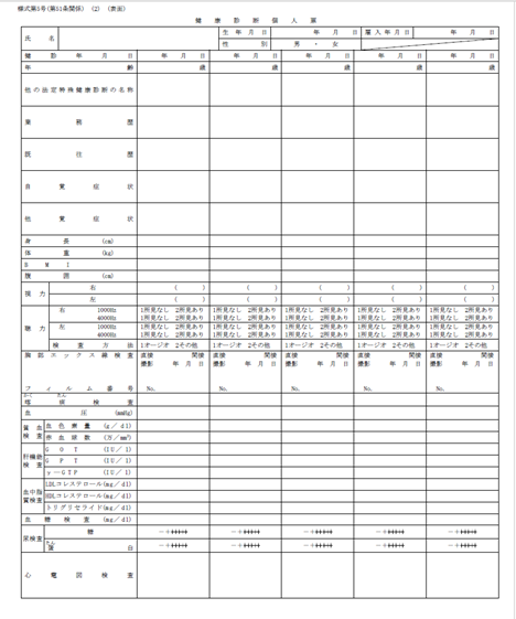 図表6 定期健康診断個人票様式(厚生労働省)