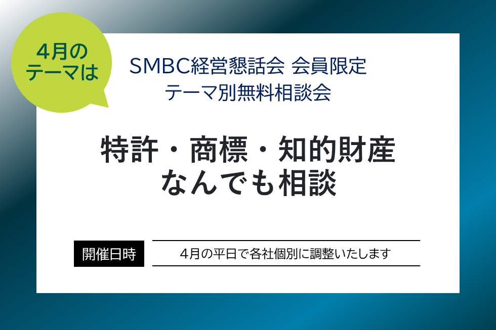 経営実務に携わる方々のさまざまなお悩みに、専門家が個別にお答えする相談会です。相談員にSMBC経営懇話会の会員企業の方であれば、どなたでも自社の具体的なお悩みを無料でご相談いただけます。ご来場が難しい方にはWeb相談で対応しております。お気軽にお申し込みください。